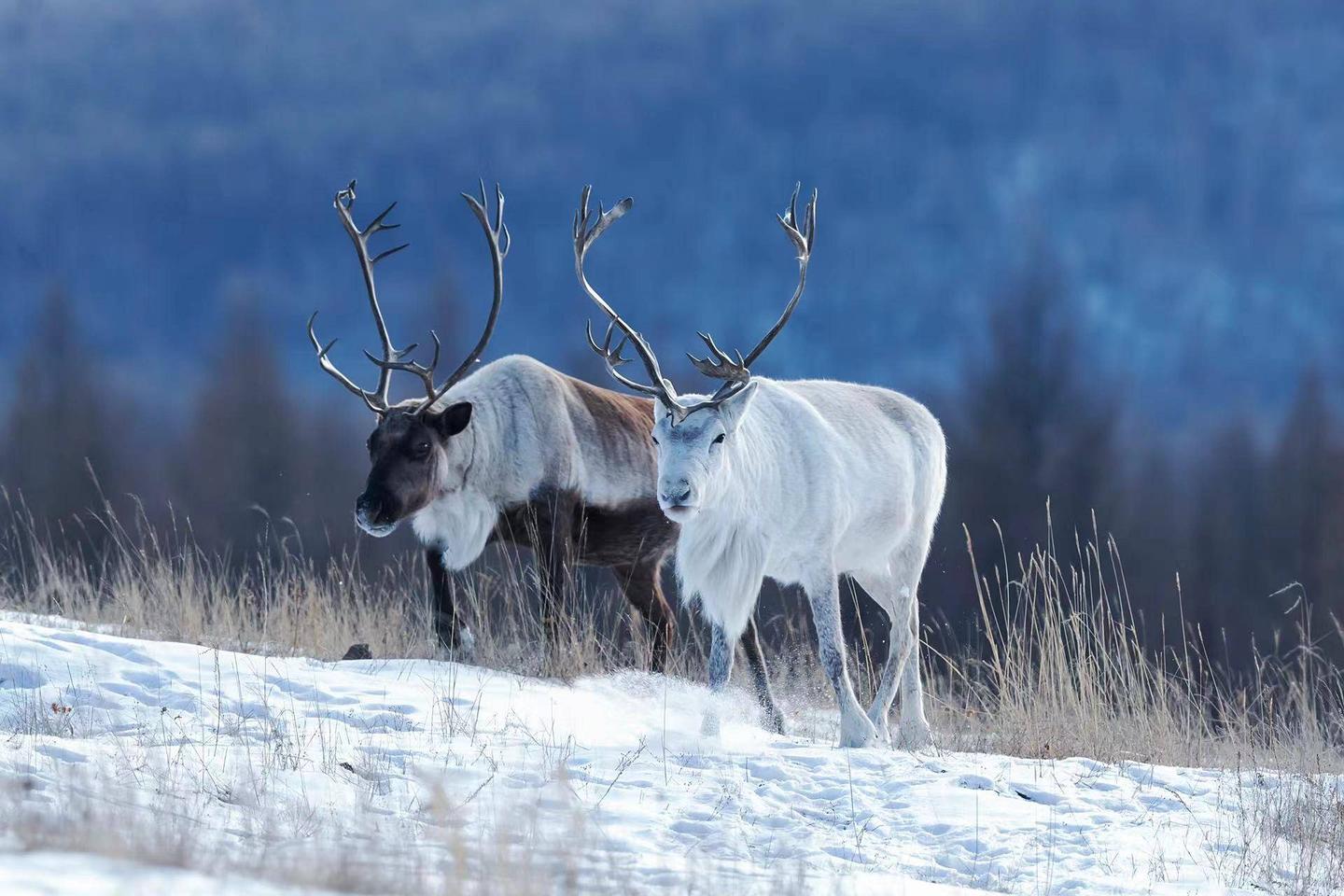 不过,在鹿家族中,驯鹿是地球上唯一一种被人类大规模驯化并用于骑乘的鹿科动物。它们被北极圈民族称为“林海之舟”,每头壮鹿可载重五十余公斤,日行七八十公里,在苔原、沼泽、深雪中如履平地。显然这是其他动物很难替代的。