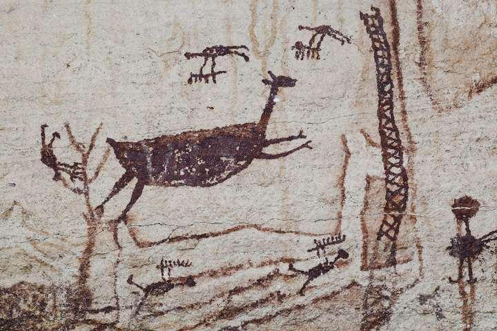 而在中国境内,大兴安岭的密林里,鄂温克族使鹿部落也是驯鹿骑乘文化的传承者。考古学家在大兴安岭北坡的岩画上发现,早在一万年前的旧石器时代,这里的先民就已经开始牵引、骑乘驯鹿了。红色颜料绘制的驯鹿群,有人牵引的画面,清晰记录了人类和鹿最早的羁绊。