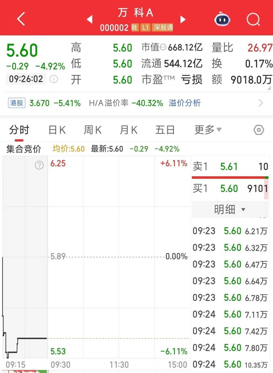 【大河财立方消息】11月27日赚配网,万科A跳空低开,跌4.92%,股价创2015年8月以来新低;港股万科企业低开5.41%。
